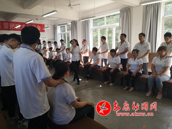 圖為紫陽縣勞動就業技能培訓中心內的按摩課