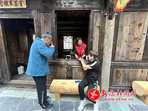 “三月的那個三來,上茶那個山呀......”行走在古鎮老街,一首悠揚悅耳的歌聲撲面而來,走進古鎮奉茶室,侯大姐滿懷激情,聲音高亢地為游客們演唱著紫陽民歌《三月三上茶山》,這已經是她今天早上接待的第三批游客了,但絲毫看不出她臉上的倦怠。街道社區居民侯服琴,秉著對民歌文化和社區工作的熱愛,長期致力于古鎮奉茶室義務接待工作,為游客演唱傳統紫陽民歌。“現在來煥古旅游的人越來越多,紫陽民歌是紫陽的傳統文化,我們有義務傳承和發揚它,讓更多外地游客們都知道紫陽民歌、愛上紫陽民歌,愛上煥古這個好地方。”侯服琴樂呵呵地說道。在今年紫陽縣“茶山放歌 聲動紫陽”民歌賽暨陜南民歌選拔比賽中,侯服琴更是用高亢嘹亮、動聽淳樸的歌聲斬獲了二等獎的優異成績。