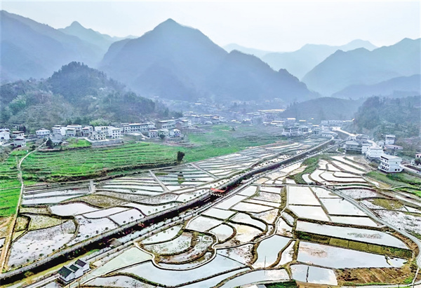 “蒿坪重鎮,始建于明。構地形為其表,因蒿草而賦名。群山環抱,溪流碧清。自古富庶地,而今新農村……”櫻花飄落的春晨,瑯瑯的書聲和著清脆的鳥鳴,回蕩在紫陽縣蒿坪鎮的茶海中。這是蒿坪中學“青蒿”文學社的學生們,他們正在誦讀的是著名作家李春平的《蒿坪賦》。