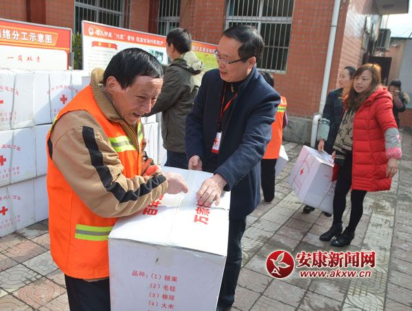 安康新聞網訊(通訊員 張小紅 周洪波)時值元宵佳節,紫陽縣紅十字會為城關鎮和向陽鎮90名保潔員每人準備了一個紅十字大禮包,為他們送上了新春禮物,祝福他們……