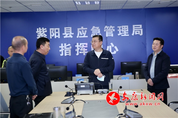 在紫陽港碼頭廣場和縣應急管理局指揮大廳,高晶華聽取了紫陽防范應對本輪強降雨和防汛防滑情況匯報。他強調,縣鎮村要把生命至上舉過頭頂,密切關注雨情,靈通聯動信息,壓實“人盯人,防搶撤”各方責任,確保應撤必撤、撤必安全,妥善解決撤離群眾食宿保障。