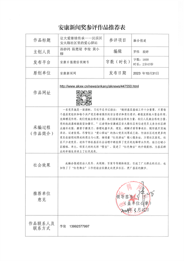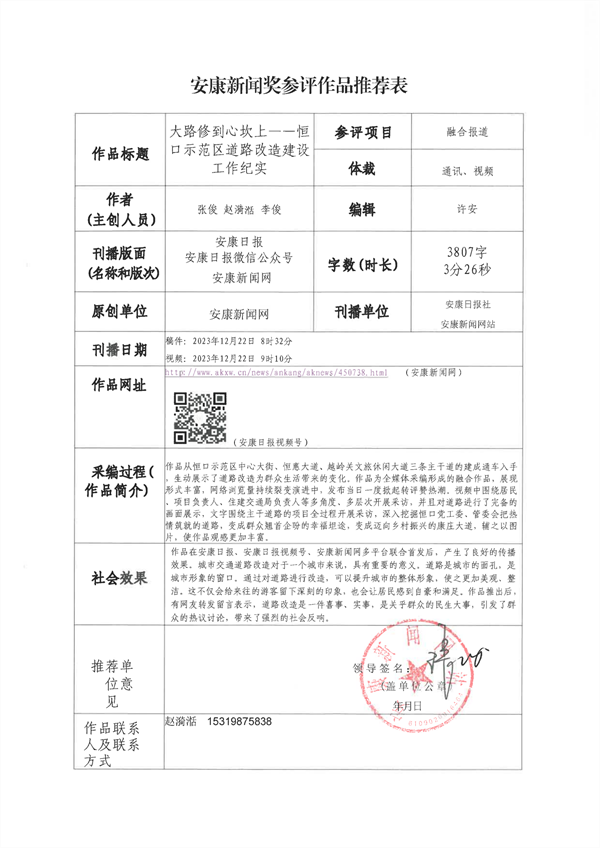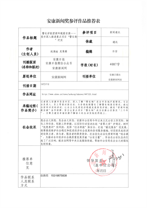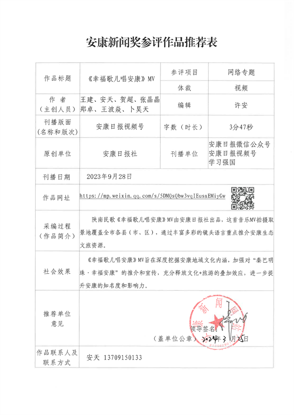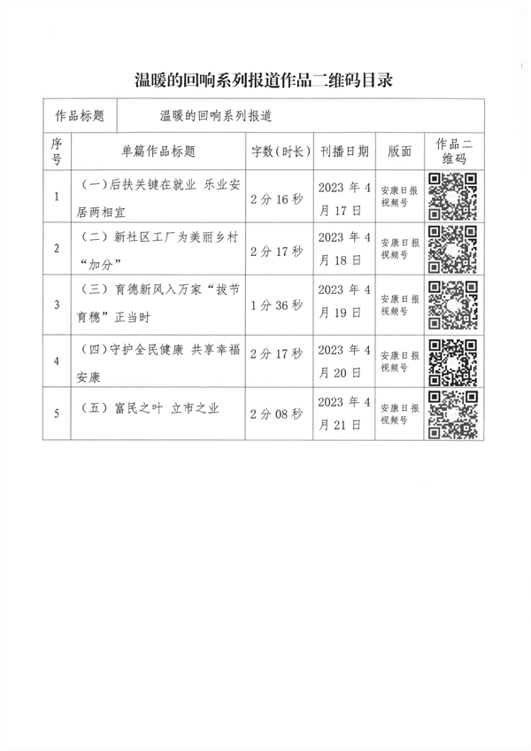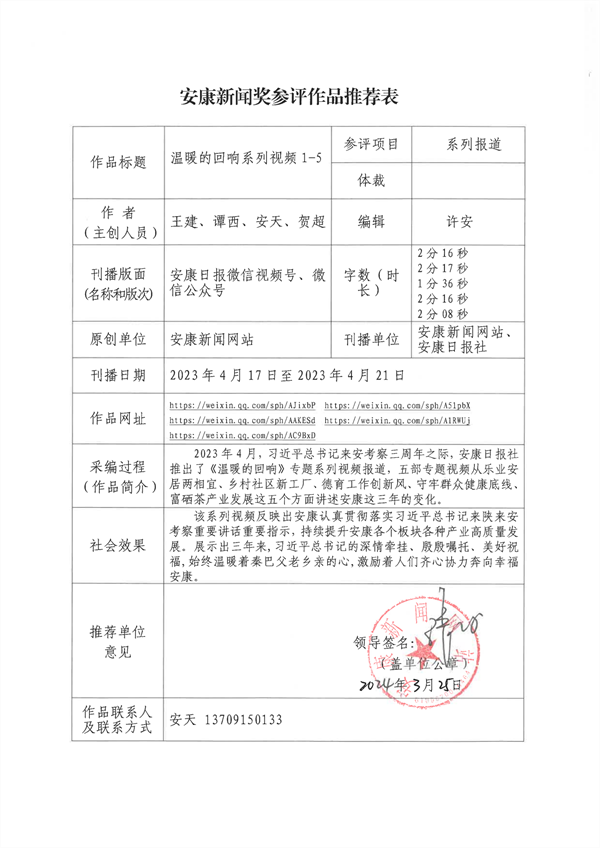 經過編委會推薦、社黨委研究決定,擬推薦以下13件新聞作品參評2023年度“安康新聞獎”。公示時間從2024年3月25日至2024年3月29日,公示期為5個工作日。如有不同意見,請向安康日報社機關紀委、新聞管理部反映。nyB安康新聞網