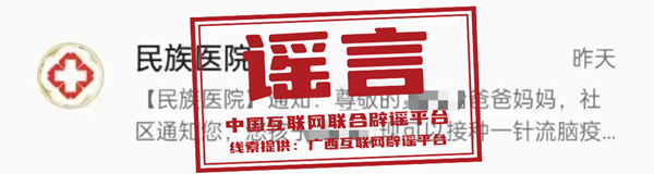 謠言:廣西壯族自治區民族醫院發布關于流腦疫苗接種通知?