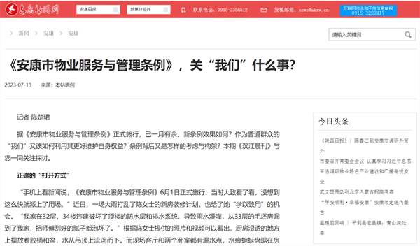 安康新聞網(wǎng)履行媒體輿論監(jiān)督職能,聚焦民生熱點(diǎn),開辦《不文明行為曝光臺(tái)》輿論監(jiān)督專欄,集中曝光身邊的不文明現(xiàn)象、行為,引導(dǎo)市民群眾自覺規(guī)范文明行為,主動(dòng)融入城市文明創(chuàng)建熱潮,為提升市民文明素質(zhì)和城市文明程度貢獻(xiàn)媒體力量。同時(shí),聚焦群眾關(guān)切,積極開展調(diào)查性報(bào)道,發(fā)布《〈安康市物業(yè)服務(wù)與管理?xiàng)l例〉關(guān)“我們”什么事?》等一批原創(chuàng)新聞,還原事件真相,及時(shí)宣講與群眾生活息息相關(guān)的最新政策條例,體現(xiàn)地方黨媒的責(zé)任與擔(dān)當(dāng)。