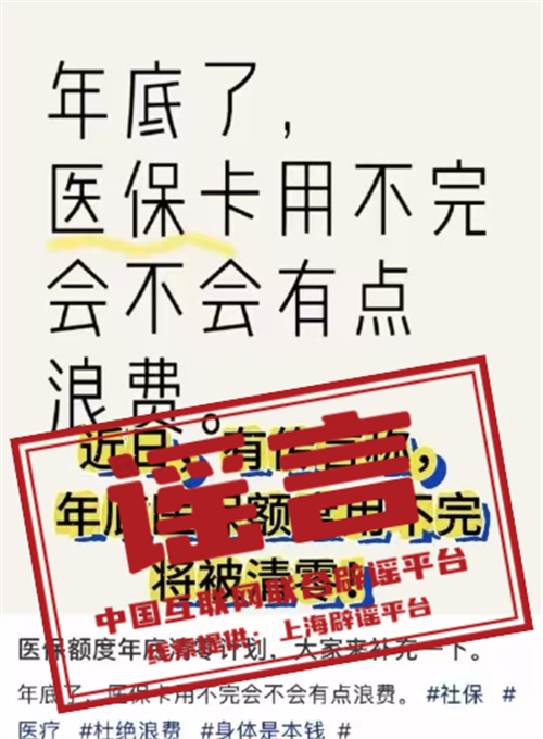 真相:臨近年底,社交平臺上關(guān)于“醫(yī)保額度”的話題,如“職工門診統(tǒng)籌額度再不用完,12月底就要清零了”“要抓緊時間用,不然白白浪費了”又熱了起來。經(jīng)求證發(fā)現(xiàn),所謂的“年底清零”純屬無稽之談,此前已被多地醫(yī)療保障局公開辟謠。