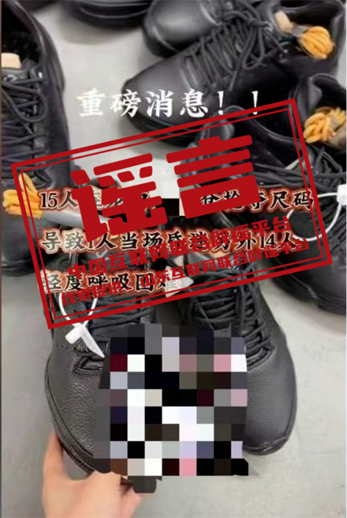 真相:近日,有網民在某平臺上發布視頻稱:“重磅消息!!15人在龍口某倉庫搶奪尺碼,導致1人當場昏迷,另外14人輕度呼吸困難,天降之禍”,引發社會關注。山東龍口網信部門巡查發現該情況后立即聯合當地公安部門啟動調查程序。調查發現,此視頻發布者系當地品牌運動折扣店店主劉某。圖中“搶奪尺碼”是指斷碼甩賣的鞋子,有時商家為吸引顧客會搞類似的優惠活動。而劉某為博取流量,吸引關注,自行編造并發布了上述謠言。目前,龍口公安已依法對劉某進行行政處罰。(來源:山東互聯網聯合辟謠平臺)