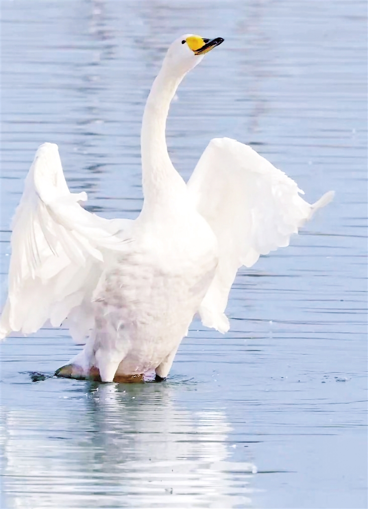 成鳥遍體雪白,僅頭頂至枕略沾淡棕黃色。雌雄同色,雌性體型略小。虹膜棕色,嘴黑灰色,上嘴基部兩側黃斑向前伸近鼻孔,蹼、爪等均為黑色。幼鳥全身淡灰褐色,嘴基粉紅色,嘴端黑色。小天鵝并非幼年的天鵝,其體型比大天鵝小,脖子更短,嘴上的黃色區域較少。(來源:安康市林學會)3Kr安康新聞網