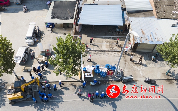 8月3日,執法人員在中心城區南環干道進行違章建筑拆除 。(趙華斌攝)