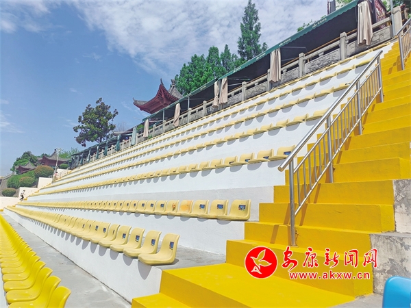 5月30日,工人們在第二十四屆安康漢江龍舟節主會場進行地面第二輪刷漆。據市市政園林處現場負責人介紹,截至目前,已搭建隔離護欄3715米,建立安檢門及疏散通道18個、蛇形通道8個,制作安裝導視牌10塊,對看臺區立面刷漆2629平方米,擦拭清洗并固定座椅3794個。錢運立 攝8wd安康新聞網