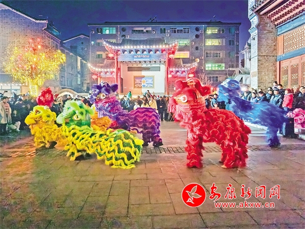 水西門小廣場上的燒火獅表演引得觀眾連連贊嘆。趙華斌 攝