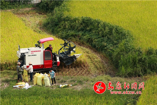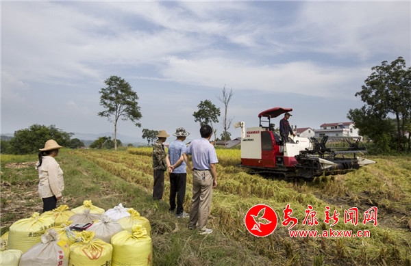 安康新聞網(通訊員 謝小利)8月25日,漢陰農機局組織技術骨干走進田間地頭,了解部署今年秋收基本情況,目前漢陰川道稻谷已經大面積進入成熟期,全縣各農機合作社已準備就緒,當日,平梁鎮西嶺村已開鐮收割,力爭做到顆粒歸倉。bws安康新聞網