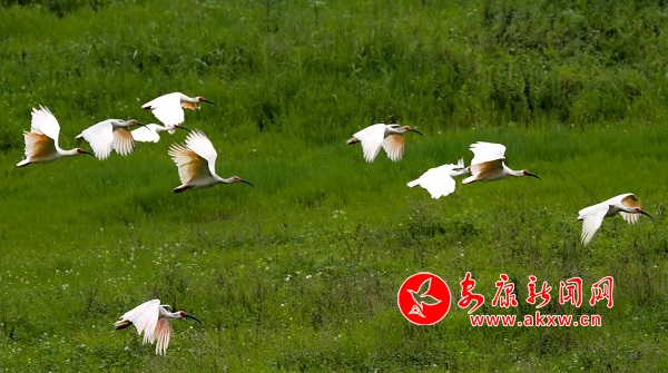7月18日上午,22只野生朱鹮在漢陰月河草灘出現。據當地人介紹,近期就已發現十幾只朱鹮在此棲息,當日朱鹮數量有所增加。據悉,我市自然生態環境不斷得到保護后,非常適宜朱鹮的生存,近幾年來已陸續發現朱鹮來到我市漢江水域和部分縣域小河覓食。 皮勇維 攝vvc安康新聞網