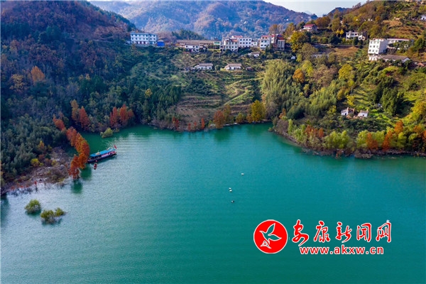 深秋時節,蔚藍的天空一塵不染,晶瑩明澈,朵朵云霞映照在碧波如洗的瀛湖水間,分外絢麗。