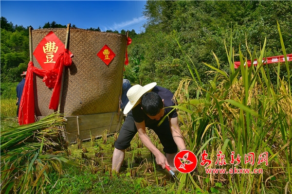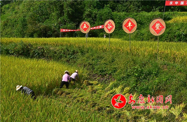 秋日,平利鄉村田園間梯田層層,稻浪滾滾,飽滿的谷穗壓彎了稻桿,放眼望去,遍野鋪金,空氣中也彌漫著淡淡的稻香。在西河鎮女媧山村三里溝原生態水稻田里,人們按照傳統的習俗和方式收割水稻,數十位村民手持鐮刀一字排開,迅速揮舞著手中的鐮刀,將金黃的稻穗割下并整齊的堆放。打谷人則分為兩組,兩人一組,交叉替換的將手中的稻秧在拌桶里反復甩打脫粒,拌谷聲“嘭呲嘭呲”有節奏地作響,聲勢頗為壯觀。與此同時,廣佛鎮松河村李家坡的農家小院已堆滿收回來的苞谷,郭老漢正在將苞谷殼撕開,編成串掛在屋檐下的竹竿上晾曬,金黃的苞谷棒子整齊排列,儼然一幅鄉村小院秋實圖。