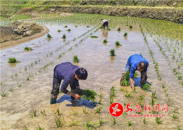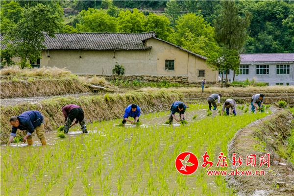 初夏時節,在漢陰縣漩渦鎮鳳堰古梯田里,一個個忙碌的身影點綴在亮麗的梯田畫面之間,隨處可見農民忙碌的身影,村民們往來的腳步不斷映入眼簾。 (圖文/陳德模)