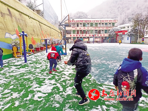 CwF安康新聞網 石泉云霧山鎮中心小學迎來初雪 譚相華 攝CwF安康新聞網