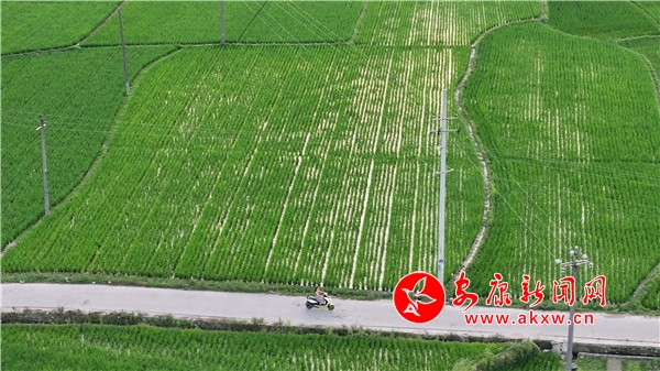 眼下,漢陰廣闊的田園里水稻連片,綠意盎然,微風吹拂著翠綠的秧苗,昭顯著夏日的蓬勃生機,一幅如詩如畫般的鄉村美景徐徐展開。從空中俯瞰漢陰縣平梁鎮,阡陌縱橫的稻田與連綿起伏的青山、錯落有致的村居、縱橫交錯的田園綠道相映成趣,如詩如畫的田園美景也吸引了不少鳥兒恣意嬉戲。漢陰縣有耕地面積32萬畝,其中水田12萬畝,素有安康“白菜心”之稱。今年全縣水稻栽種面積8.95萬畝,在“藏糧于地、藏糧于技”的總體要求下,六月初已完成插秧工作。 圖文/黃智發gWb安康新聞網