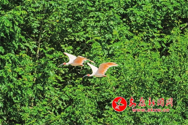 日前,在漢陰縣城關鎮的一處山水間,最多時有近20多只朱鹮棲息在2棵樹枝上,而且絕大多數為今年的新生代,種群在不斷擴大,說明漢陰的生態已經滿足朱鹮的繁衍生息條件。同時需要提供更多的保護濕地、河流為它們提供覓食、棲息之處。相信在不久的將來,漢陰的山是金疙瘩,水是銀浪花,鳥是紅寶石。 wQH安康新聞網