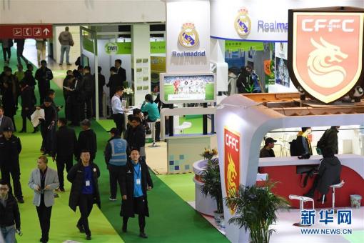 11月30日,參觀者在俱樂部展示區參觀。 當日,第二屆中國國際足球產業博覽會在中國國際展覽中心開幕,本屆博覽會共有一百多家參展商參展,其中國際參展商數量達……