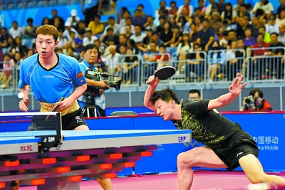 男雙決賽更是上演了一場(chǎng)世界級(jí)對(duì)決。京滬組合馬龍/許昕是2011年世乒賽冠軍,衛(wèi)冕冠軍周雨/樊振東也曾在2015年世乒賽中闖入決賽。最終,馬龍/許昕在決勝局中以9比11惜敗。賽后馬龍表示,本場(chǎng)比賽的含金量并不亞于世錦賽,“比賽中我甚至已經(jīng)想不起自己是在打全運(yùn)會(huì)還是世界大賽了。”