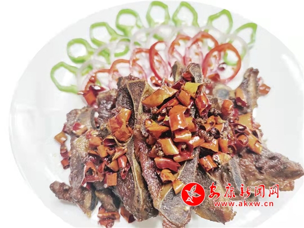 推薦理由:端上桌時,就感覺這道菜十分有排面。選用豬的肩胛骨做成的香爆熱菜,僅從視覺上就給人一種滿足感。堆成小山一樣的扇子骨整齊的碼在盤中,紅色的干辣椒點綴其間,教人垂涎欲滴。附著在骨頭上的肉塊大量多,并不難啃。牙齒稍微一拉扯,麻辣鮮香的肉就被帶入口中,因為經過高溫炸制,扇子骨的外面已經產生“美拉德反應”,棕褐的色澤和焦香的口感相得益彰,仿佛舌尖跳起一支麻辣勁舞,胃與口腔得到了雙重滿足。RY7安康新聞網