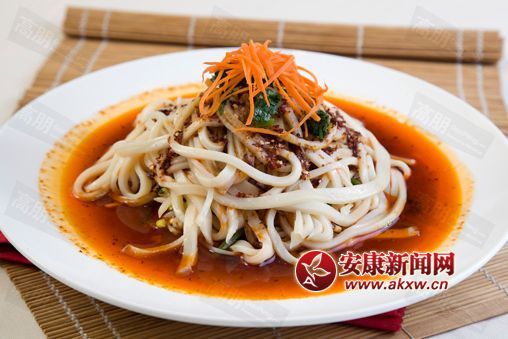 安康人習(xí)慣的早點(diǎn)是蒸面,醋湯一調(diào),一大盤下喉,又有味又管飽。之所以說(shuō)安康人習(xí)慣早點(diǎn)吃蒸面,是因?yàn)榘部档恼裘驿佔(zhàn)犹嗔耍俨街畠?nèi),必有蒸面,吃蒸面最方便……