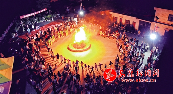 “五一”勞動節當日,在嵐皋縣孟石嶺鎮,一場篝火晚會火熱舉行。全鎮干部群眾及外來游客紛紛前來享受頗具地方特色的娛樂活動。楊倩 楊文君 攝
