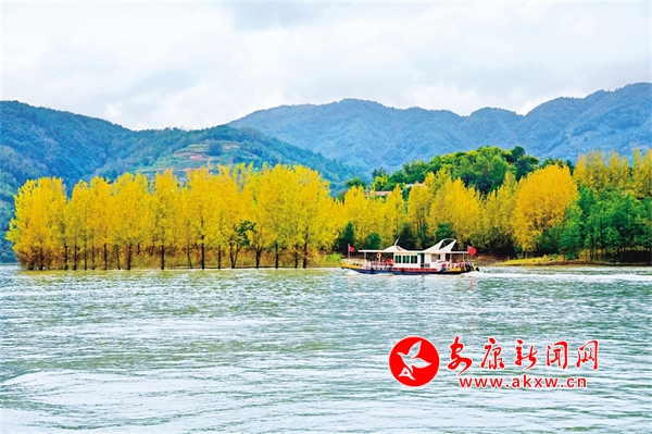 10月3日,秋日的瀛湖如詩如畫,吸引眾多游客前來打卡。周濬 攝