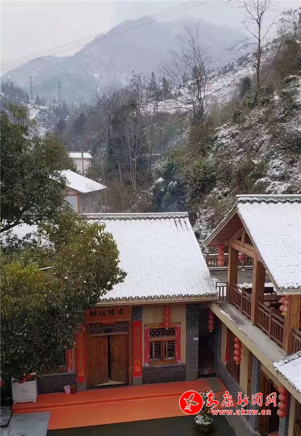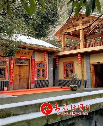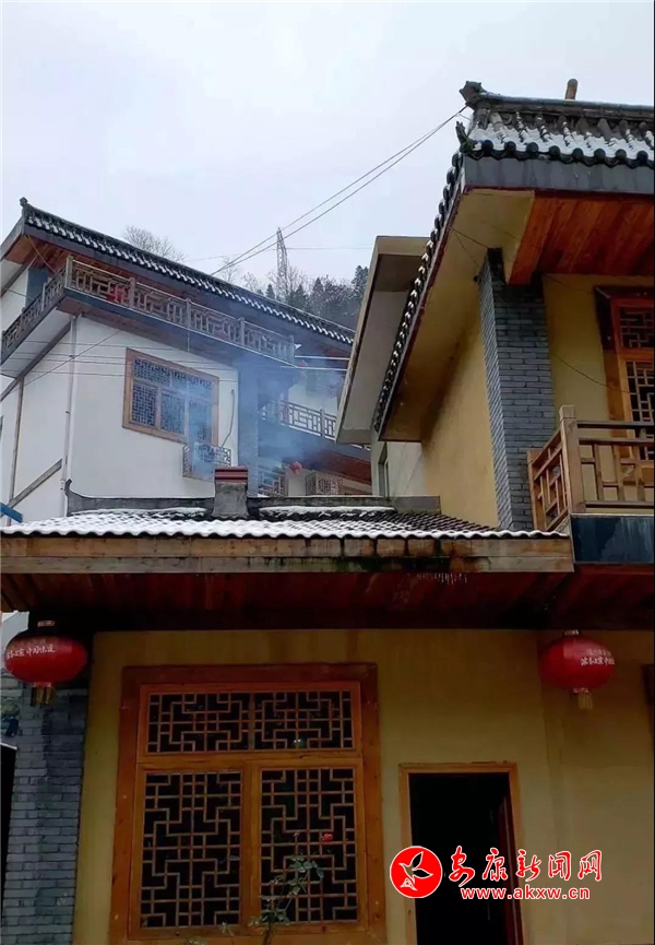 紅屋檐、紅格窗、紅木門、紅楹聯、紅地毯,還有那懸掛在屋頂上隨風舞動的紅燈籠,在瑟瑟寒風和茫茫白雪中,才顯其妖嬈展姿。這里,是紅與白色澤、熱與冷色溫的匯聚。紅,是一枝梅,是數盞燈,是萬家火,是山里人熱騰騰好日子的主色調……